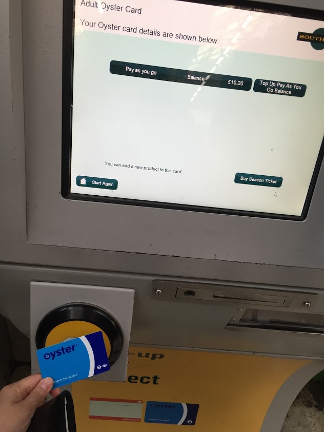 이제 떠나기 전 오이스터 카드 잔액도 확인해 줍니다. 10파운드 남아있네요.