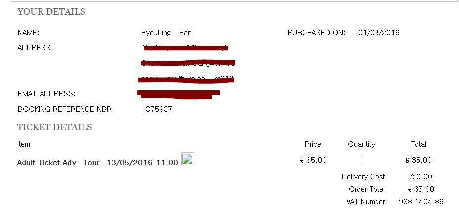 예매를 진행후에는 아래 제가 받았던 티켓정보가 나올꺼예요