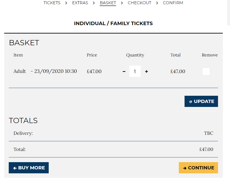 2020년도 8월 기준으로 어른 1명은 47파운드에 판매되고 있습니다. 환율로 따지면 75,000원 정도 하네요.