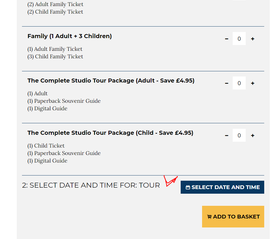 해리포터 스튜디오에 가면 원하는 날짜와 입장시간을 정한 후 티켓예매가 가능합니다.